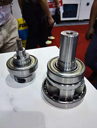 (1)軸承分布:輸出也是雙軸承,其中一個在輸出軸上,另一個在軸的根部(注:根部軸承大于3個行星輪分布的外徑以及行星架),當給予減速機徑向力時,力絕大部分承載在根部的大軸承上,齒輪受力較小,使用壽命長;